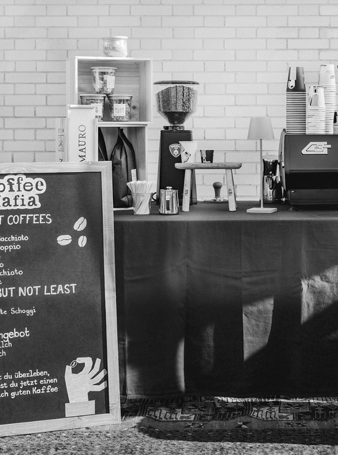 Egal, wo und wie du uns brauchst: Wir tauchen auf, schlagen diskret zu und liefern Kaffee mit Wirkung. Ob drinnen oder draussen, gross oder klein, bei Events, Messen oder Promotionen – wir passen uns an, fügen uns ins bestehende Setup ein, für ein unvergessliches Barista-Erlebnis. Immer mit dem Ziel: ein Auftritt mit Impact und Kaffee, der keine Fragen offen lässt.